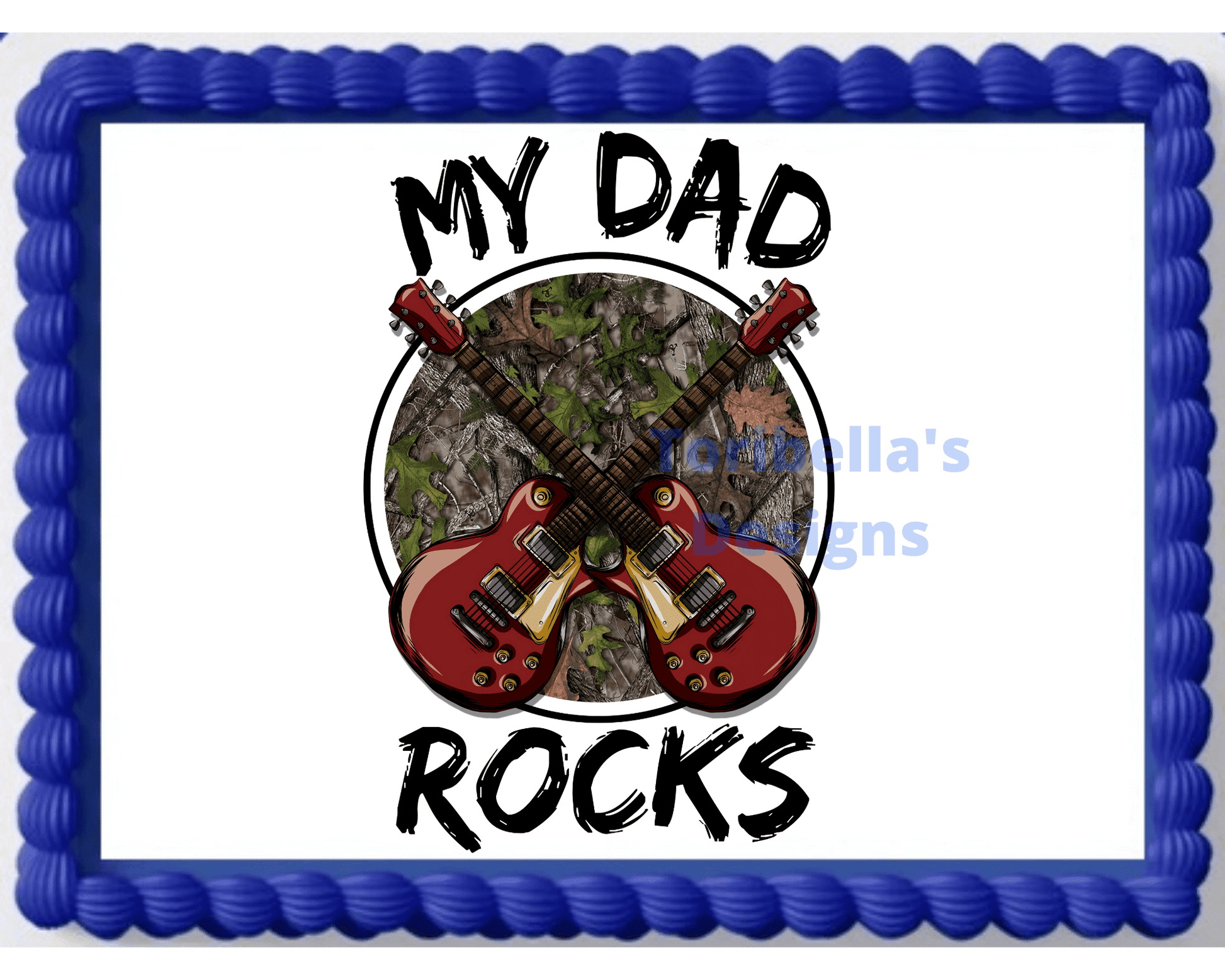 My Dad Rocks Image Edible Father's Day Birthday Cake Topper Frosting Sheet Edible Photo Paper Cake Decoration For a 1/4 Sheet Cake 10" by 8"